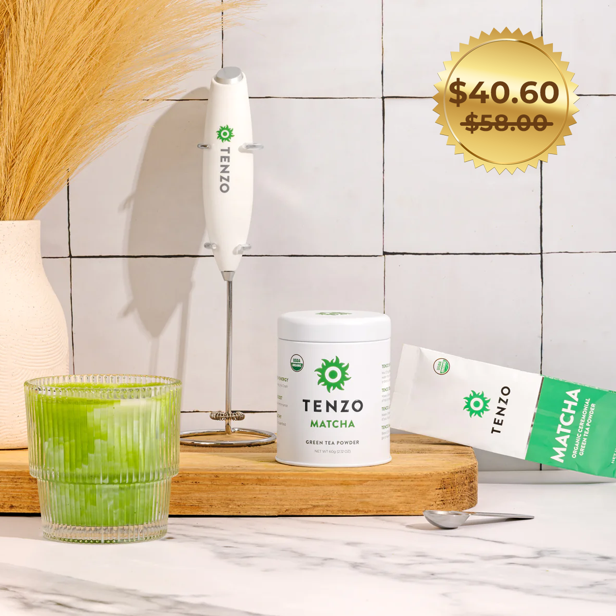 Most matcha on the market is bitter, grainy, astringent, and dull in color, which means you have to add sweeteners or other additives to make it taste good. Tenzo, on the other hand, is so high-quality that it tastes great with just water.